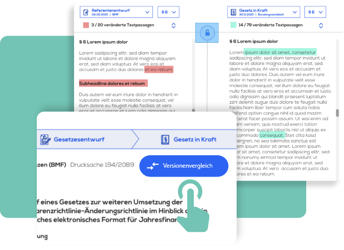 Vergleichen Sie Versionen von Änderungsgesetzen und konsolidierten Gesetzen.